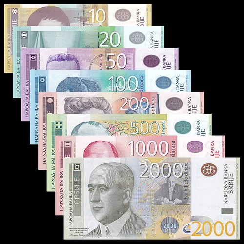 Collecters Item: Serbia Set 8 Pcs, 10 20 50 100 200 500 1000 2000 Dinara, P-54-61, Unc