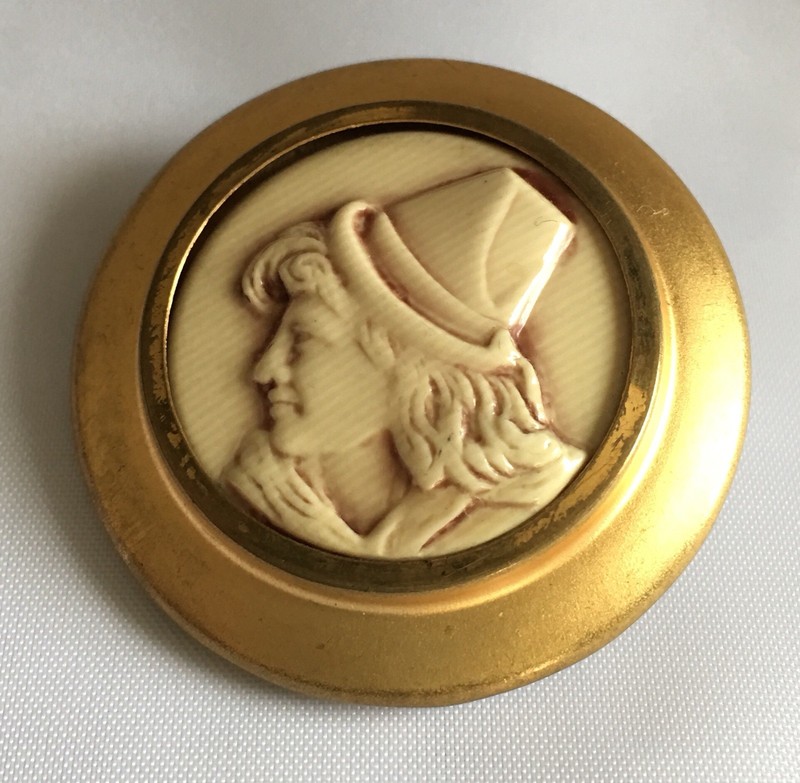 Valuable: Rare Antique French Cameo Celluloid Button 1-1/3'