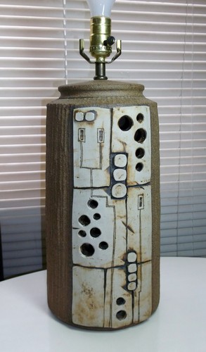 Valuable: Rare Bob Sakoda Mid Century Brutalist Stoneware Lamp Ex Cond Maxwell Bennett Era