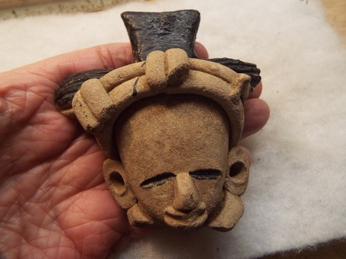 Valuable: Rare Primitive Pre-Columbian Effigy Looks Mayan Black Head Clay Artifact