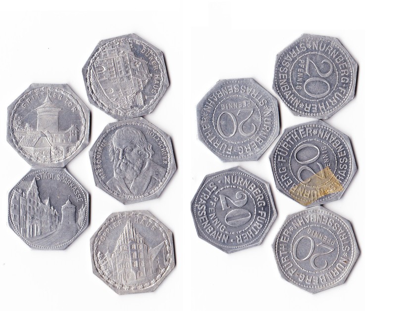 5 * Different Germany Nuremberg 20 Pfennig Notgeld Set 2