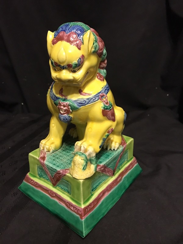 Valuable: Vintage Chinese Porcelain Foo Dog Statue Rare Yellow Color