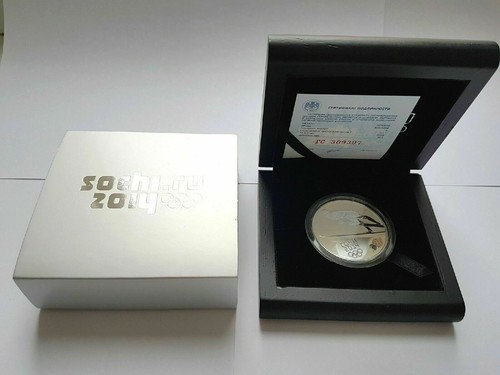 Collecters Item: Russia 3 Roubles Silver Coin 2014 Sochi Olympic Springboard, Wooden Box