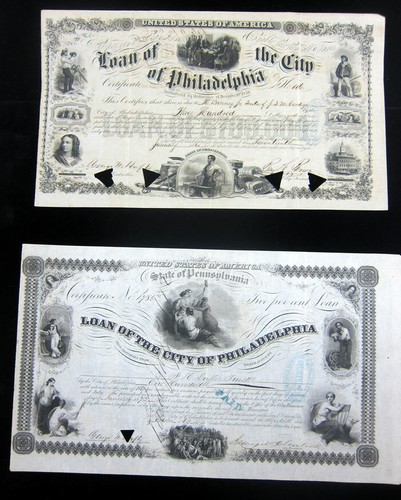 Collecters Item: Two Different - Loan Of The City Of Philadelphia Certificates - 1860 And 1862