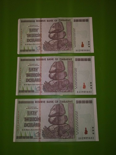 Lot Of 3, 2008 Zimbabwe Fifty 50 Trillion Dollars Sequential