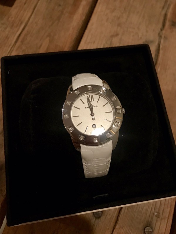 Pandora Imagine Watch With White Leather Band