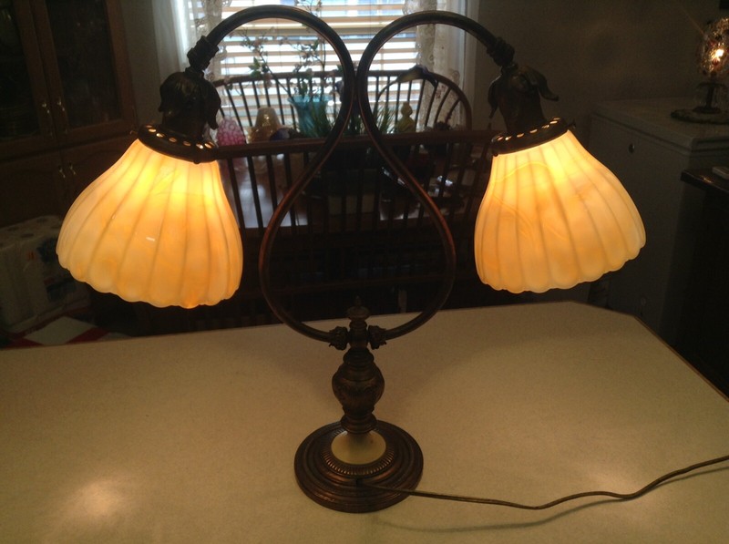 Gorgeous Arts & Crafts Double Lamp Rare Kokomo Slag Glass Shades Impressive