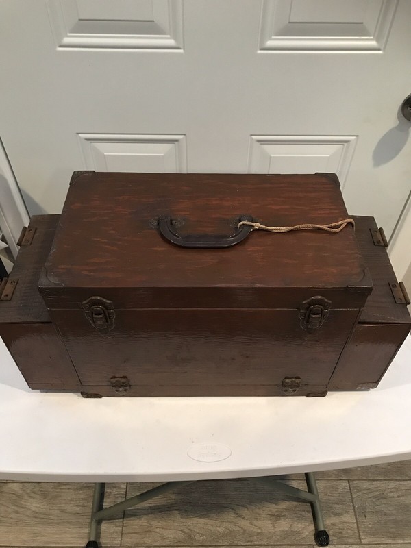 Valuable: Primitive Wood Fishing Tackle Box With Drawers, Rare And Unique