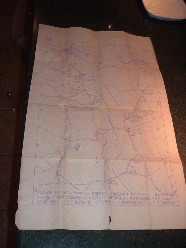 Valuable: Rare Ww1 World War One 325Th Infantry Map Pvt.D. Osiason Hq St.Juvin 1918