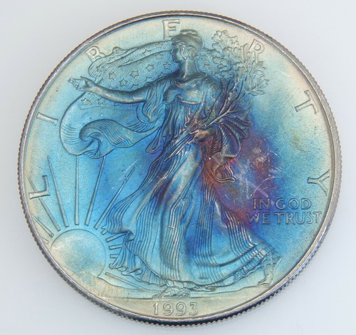 Bullion: 1993 Silver Eagle Walking Liberty Us Dollar Coin - Toned Blue