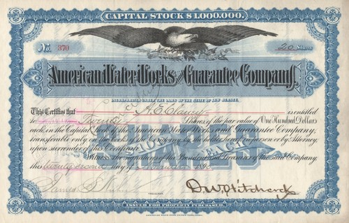 Collecters Item: 11 Different American Water Works And Electric Company Stock Certificates