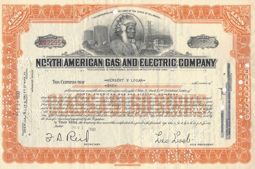 Collecters Item: North American Gas & Electric Company....1930 Stock Certificate