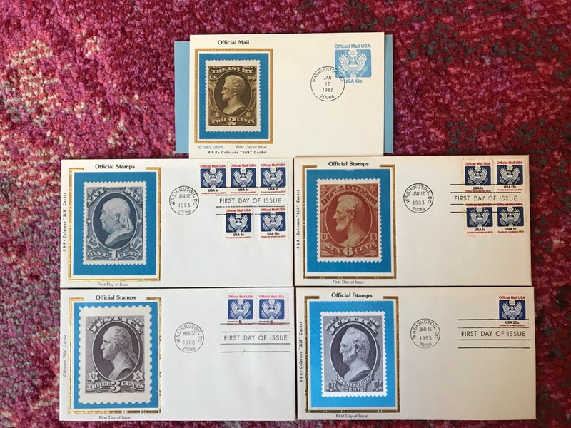 Collecters Item: Us 20C Official Stamps First Day Covers Lot 2 W/ Colorano Silk Cachets