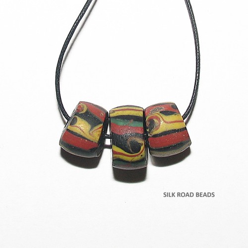 3 Antique Venetian Fancy Large Ghana Eye Beads African Trade Rare #600D