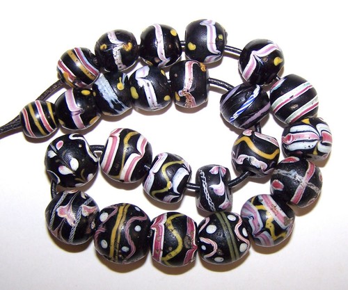 Antique Venetian Trade Beads - Black Fancy Rounds With Pink Theme Decorations