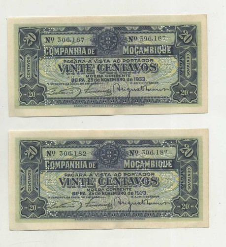 Collecters Item: Lot 2 Banknotes Portuguese Mozambique / Beira.1932.