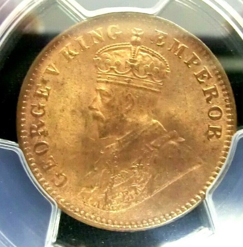 Collecters Item: Pcgs Ms65Rd Secure-India/British 1912C George V 1/4 Anna Gembu Scarce