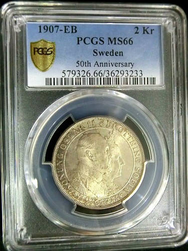 Collecters Item: Pcgs Ms66 Secure-Sweden 1907Eb Oscar Ii Silver 2 Kronor Super Gembu Scarce