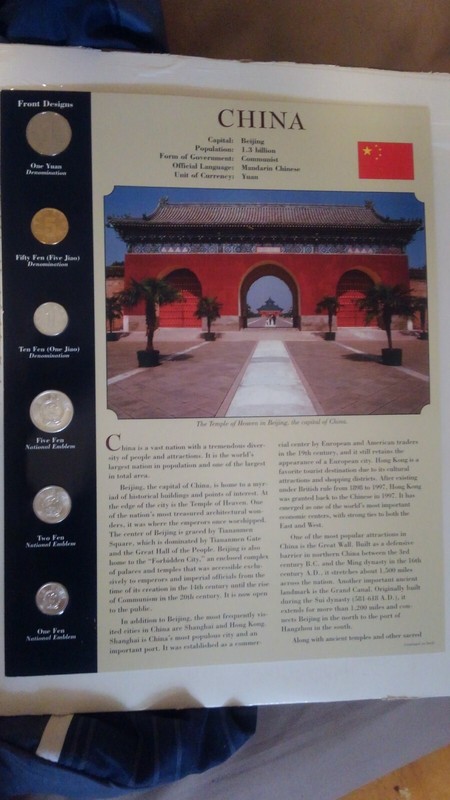 Set Of Six Chinese Coins On A Large Information Card. Coins Are Uncirculated.