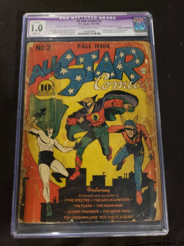 Collectors Item: All Star Comics #2 - Cgc 1.0 Restored 1940- Green Lantern, Flash & Spectre