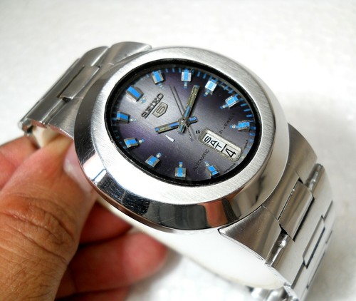 Seiko 5 Dynamic Automatic Japan Made Oval Designer Grey Dial Mens 39Mm Watch