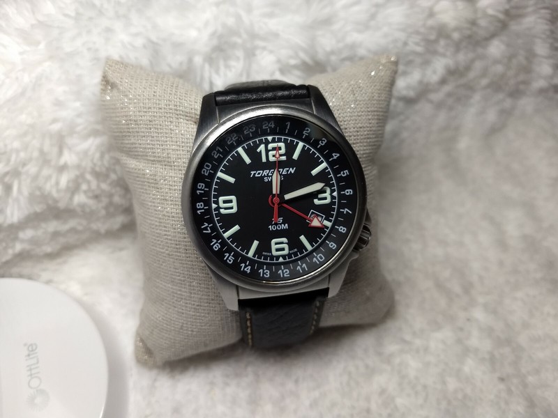 Torgoen Swiss T5 Zulu Time Professional Pilots Watch, Black Leather Band
