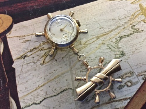 Valuable: Rare Vtg 10K Gold-Rg Swiss Avalon Nautical Ship Wheel-Nurse-Pendant Navy Watch