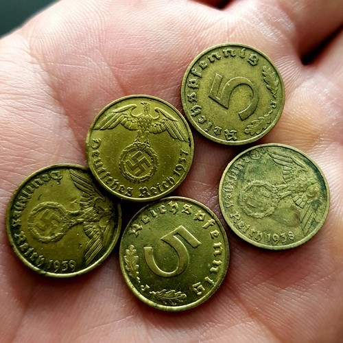 German Lot Brass Coins Original 5X5 Reichspfennig 3Rd Reich Ww2