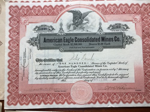 Collecters Item: A Large Lot Of Vintage Stock And Bond Certificates - Mining, Etc.