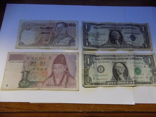 Collecters Item: Lot Of 4 Bills, 2-Foreign Bills, 1-Silver Certificate, 1-1963 B