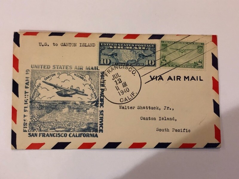 Collecters Item: Us Stamps Covers - U.S. To Canton Island, South Pacific-Us Air Mail Cancels 1940