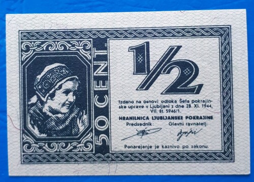 Collecters Item: Yugoslavia, Slovenia, Province Of Ljubljana City Money, 1/2 Lire 1944, Wwii, Unc