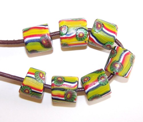 Antique Venetian Trade Beads - Fancy Barrels With Stripes, Green Chevron Eyes