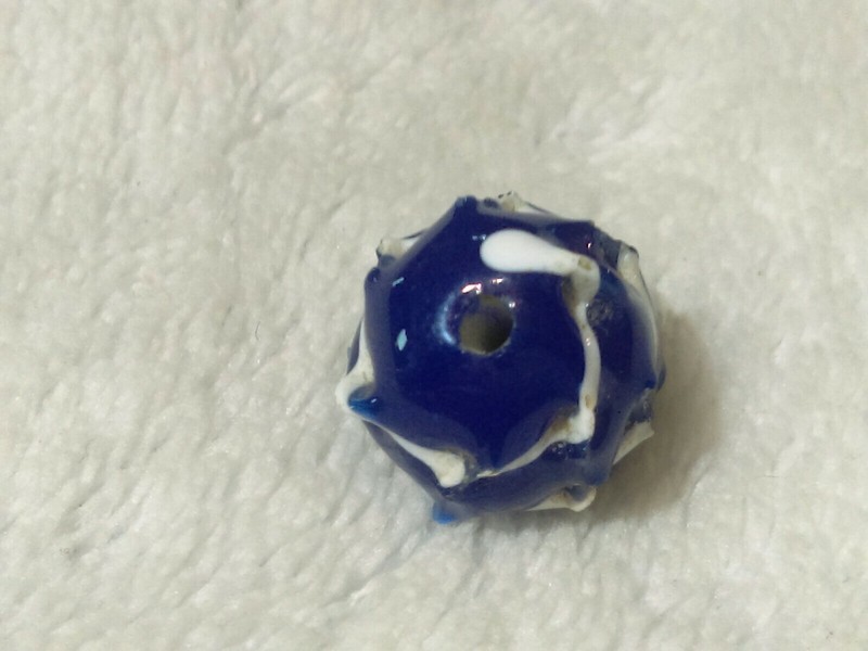 Valuable: Vintage Antique Cobalt Blue White Art Glass Bead