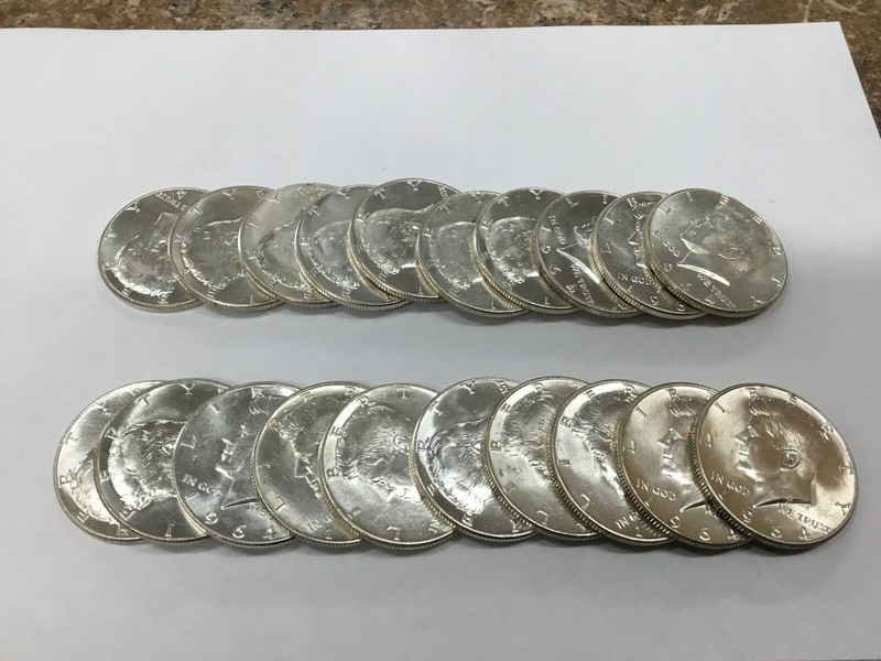 Bullion: $10 Face Value 1964 Kennedy Half Dollars 90% Silver 20-Coin Roll (Uncirculated)