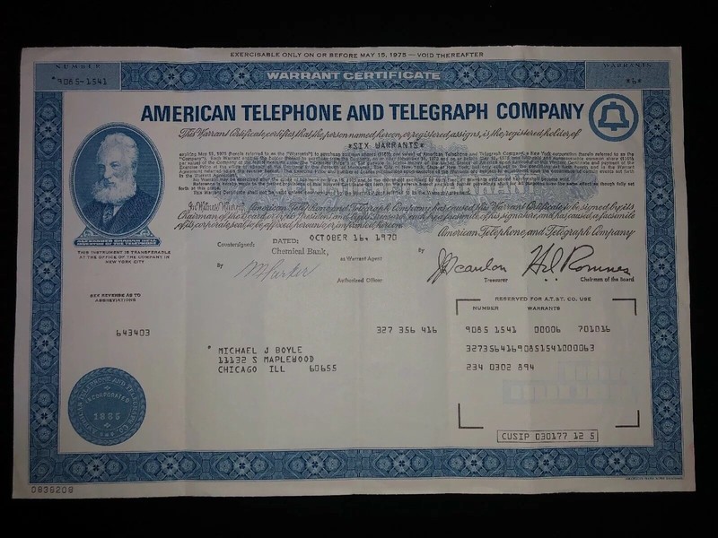 Collecters Item: American Telephone And Telegraph Stock Certificate 1970