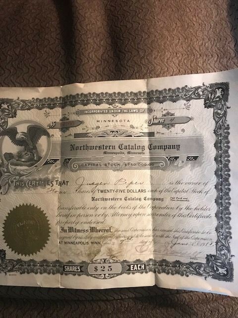 Collecters Item: Antique Vintage 1918 Northwestern Catalog (Montgomery Ward) Stock Certificate
