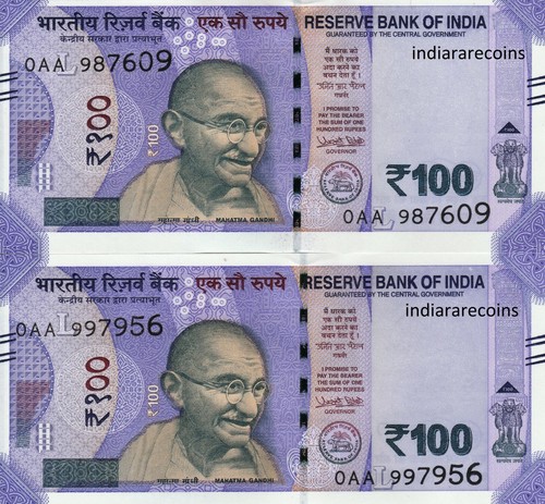 Collecters Item: India 2018 Color Error Set 100 Rs L Inset 0Aa Prefix Paper Money Note Unc New