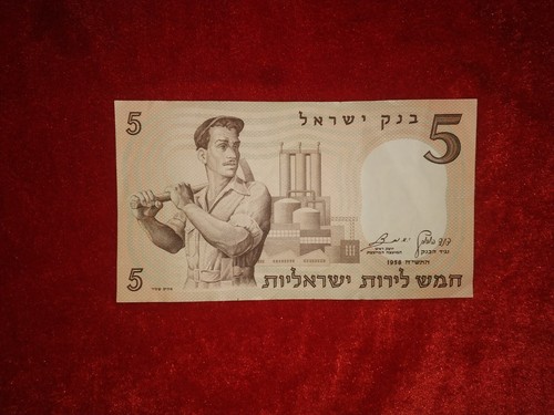 Rare Israel 5 Lirot Banknote, 1958-5 Lirot Banknote 1958 -Ael 5 Lirot Banknote