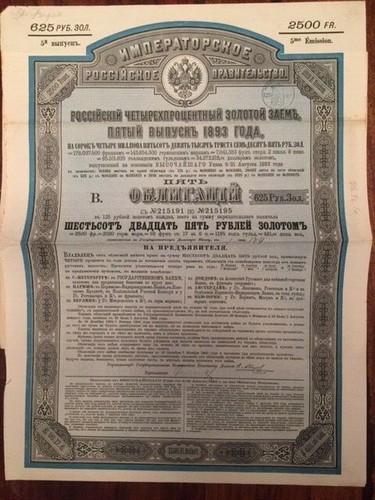 Russia - Imperial Russian Government-5Th Issue-4% Gold Bond-1893-625 Roubles