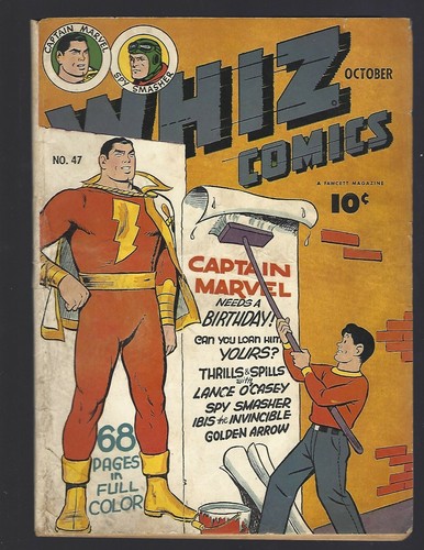 Collectors Item: Whiz Comics Captain Marvel #47 4.5 Vg 68 Offw/Ltcr Pages Clean Vivid Colors 1943