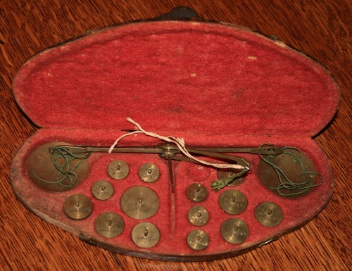Antique Rare Gold Coin Scale Mid 1700S With Brass Weights In Original Case!!!