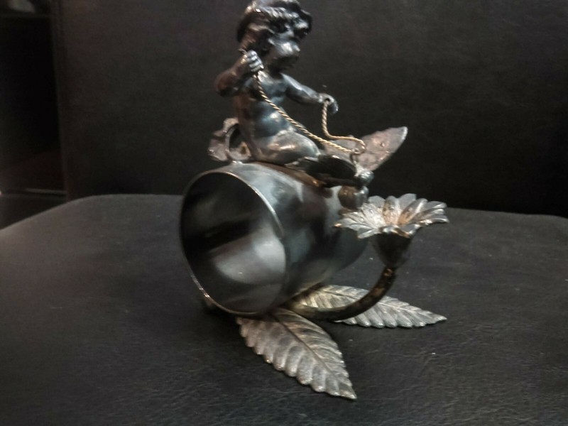 Antique Silverplate Figural Napkin Ring Holder Rare Cherub #021