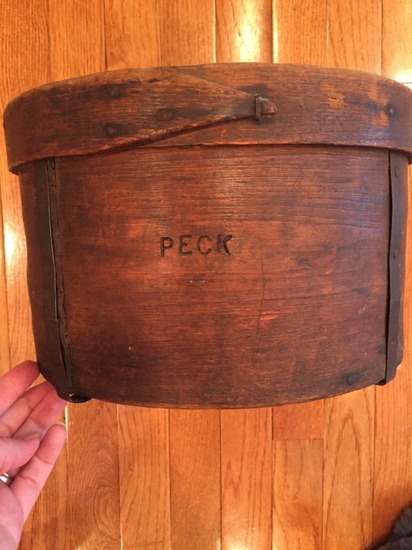 Valuable: Rare Antique Primitive Round Wooden Cupboard Bowl Engraved Peck 1800S