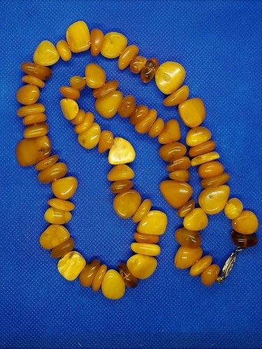 Valuable: Vintage Baltic Natural Amber Necklace Butterscotch Egg Yolk Bead 56.5G 24