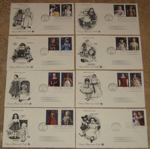 Collecters Item: 8 Us First Day Covers: July 28, 1997 - Classic American Dolls 32 Cent Stamps