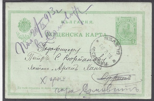 Collecters Item: Bulgaria:1913,5,19 Used Postal Card (H&G 25D). 5Mm Space, Stamp To Right Border