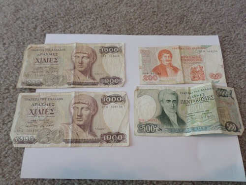 Collecters Item: Four Greece Greek Currency Notes (2) 1000, (1) 500, And (1) 200 Drachmas Notes