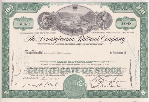 Lot Of 100 Stock Certificates For Pennsylvania Railroad Co