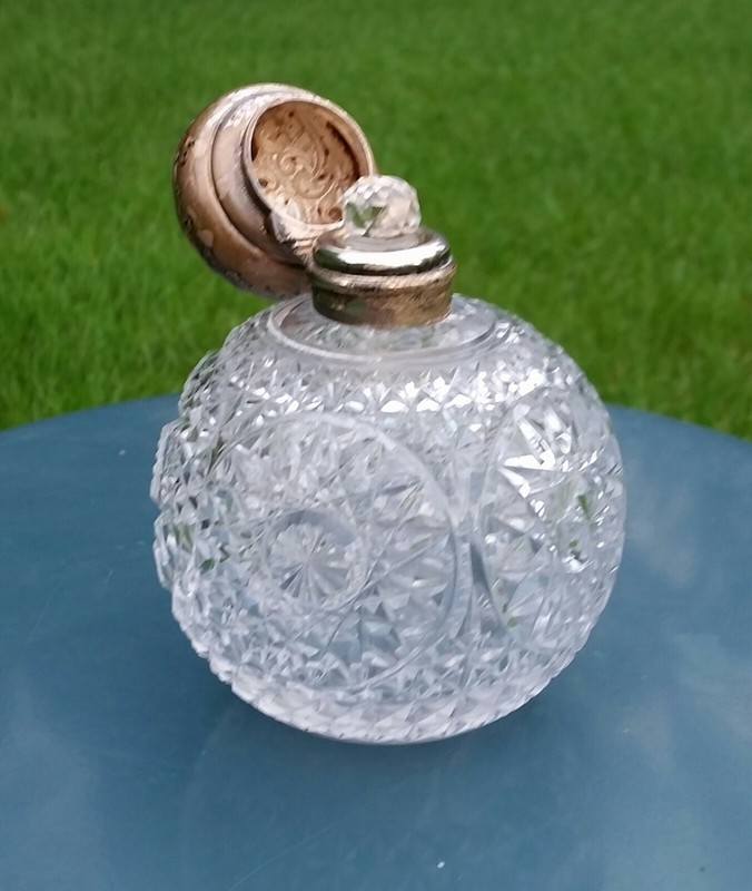 Pefume Bottle- 1903 Crystal Perfume Bottle With Sterling Silver Top. Rare.